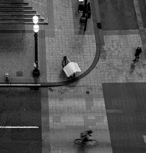 “Estuve sin hogar durante varios años. La peor parte fue ser ignorado, mi pobreza fue tratada como una enfermedad contagiosa. La gente ni hablaba ni me miraba. Perdí mi voz. Era invisible”, continua Ian. Ahora, a través de la fotografía “puedo hacer visible a esta población que es activamente evitada e ignorada”.